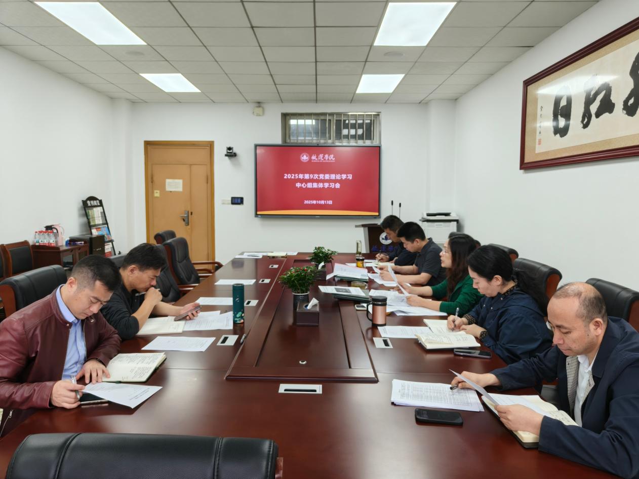 10月13日,学院党委在3009会议室组织召开2025年第9次党委理论学习中心组集体学习会。学院党委理论学习中心组成员参加会议。院党委书记侯俊主持会议。