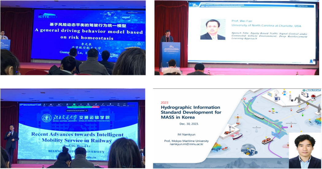 The conference featured keynote speeches by five distinguished scholars: Professor Lu Guangquan (Beijing University of Aeronautics and Astronautics): National Leading Talent in Science and Technology, Ministry of Transport’s Young Scientific Innovation Leader, and Principal Investigator of National Key R&D Programs; Professor Wei Fan (University of North Carolina at Charlotte): UNC Charlotte Distinguished Scholar; Professor Li Dewei (Beijing Jiaotong University): Chair of the International Union of Railways (UIC) University League, Asia-Pacific Affairs Committee Member, and ICTTE Member; Professor Namkyun Im (Mokpo National Maritime University); Professor Ma Yong (Wuhan University of Technology): Recipient of the National Natural Science Foundation’s Excellent Young Scientist Fund. Their presentations, titled “A General Driving Behavior Model Based on Risk Homeostasis”, “Equity-Based Traffic Signal Control under Connected Vehicle Environment: Deep Reinforcement Learning Approach”, “Recent Advances towards Intelligent Mobility Service in Railway”, “Introduction of Hydrographic Information (Nautical Charts) Standard Development for MASS in Korea”, and “Intelligent Path Planning for Ocean-going Ship in the Pirate Area Considering the Real Marine Environment”, highlighted cutting-edge advancements in intelligent road systems, urban rail transit control, standardization of autonomous ship hydrographic data in Korea, and transoceanic vessel route planning.