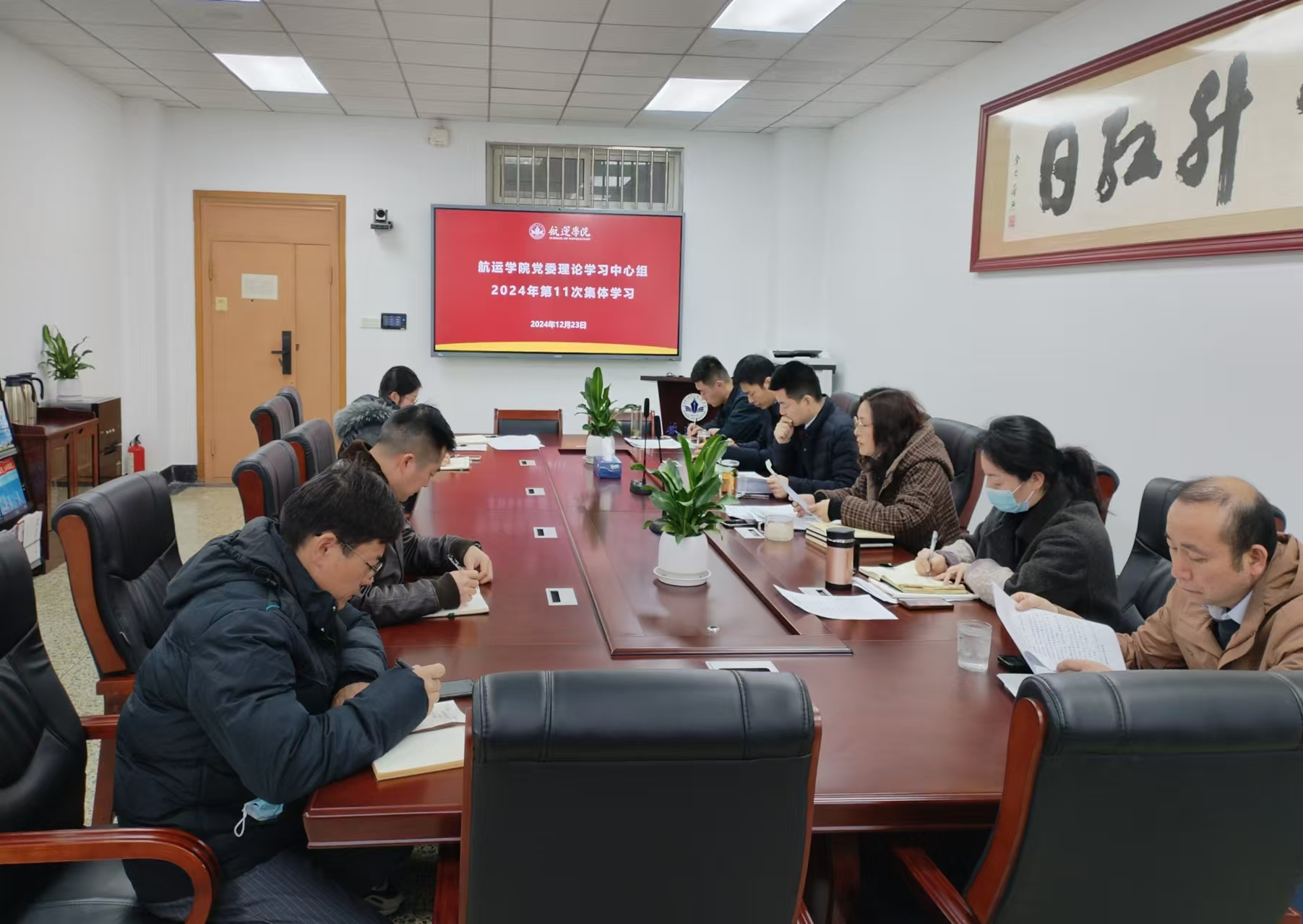 2024年12月23日,学院党委在3009会议室组织召开党委理论学习中心组第11次学习会,学院党委理论学习中心组全体成员参加会议。院党委书记侯俊主持会议。