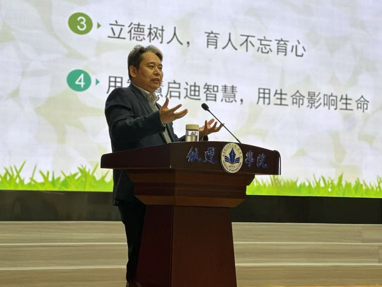 侯俊书记在总结发言时,希望全体教职工能以此次师德讲坛为契机,将所学所悟运用到实际工作与生活中,不断增强自身心理素质,涵养高尚师德师风,以健康的心理、积极的心态和高尚的职业道德,潜移默化地影响和感染学生,做到教书育人有机结合,为学院发展和学生成长成才贡献力量。