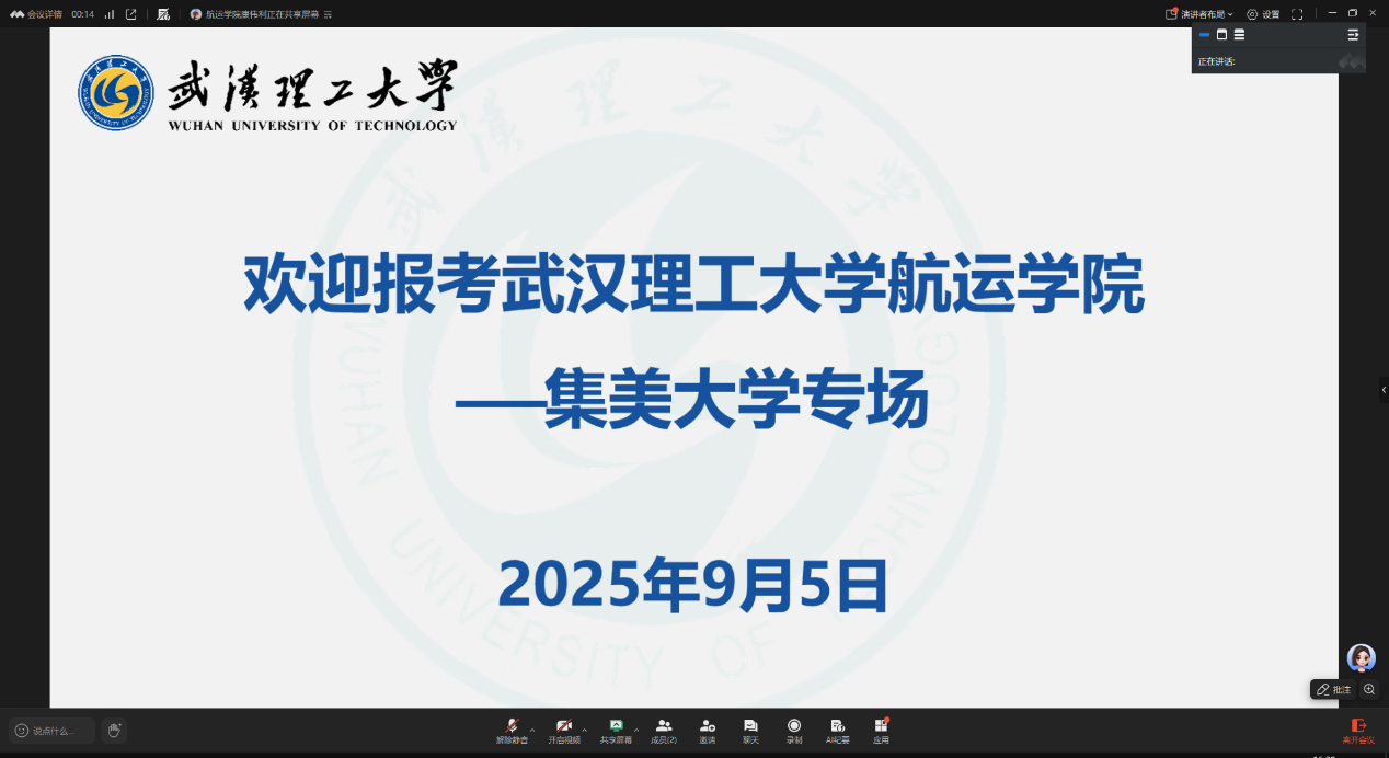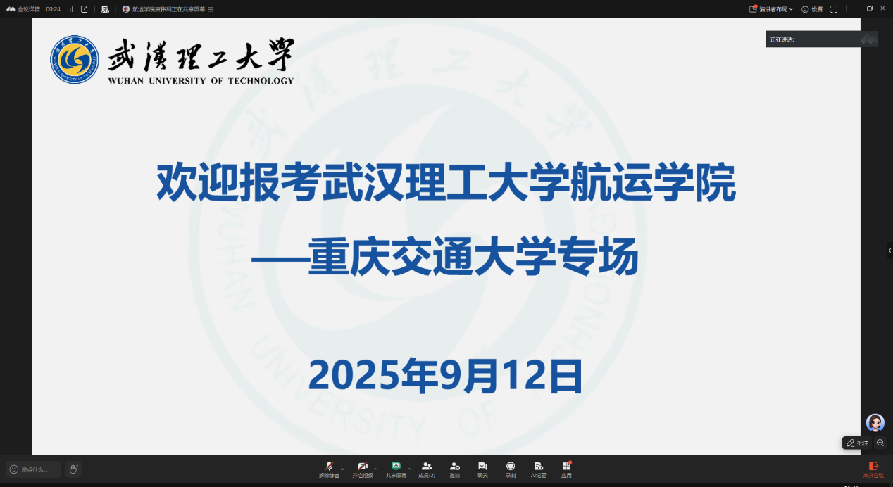 为进一步增加广大考生对必赢3003no1线路检测中心学科专业和研究生培养情况的了解,提升研究生一志愿报考率和生源质量,9月5日与9月12日,学院分别面向集美大学和重庆交通大学举办了两场研究生招生线上宣讲会。